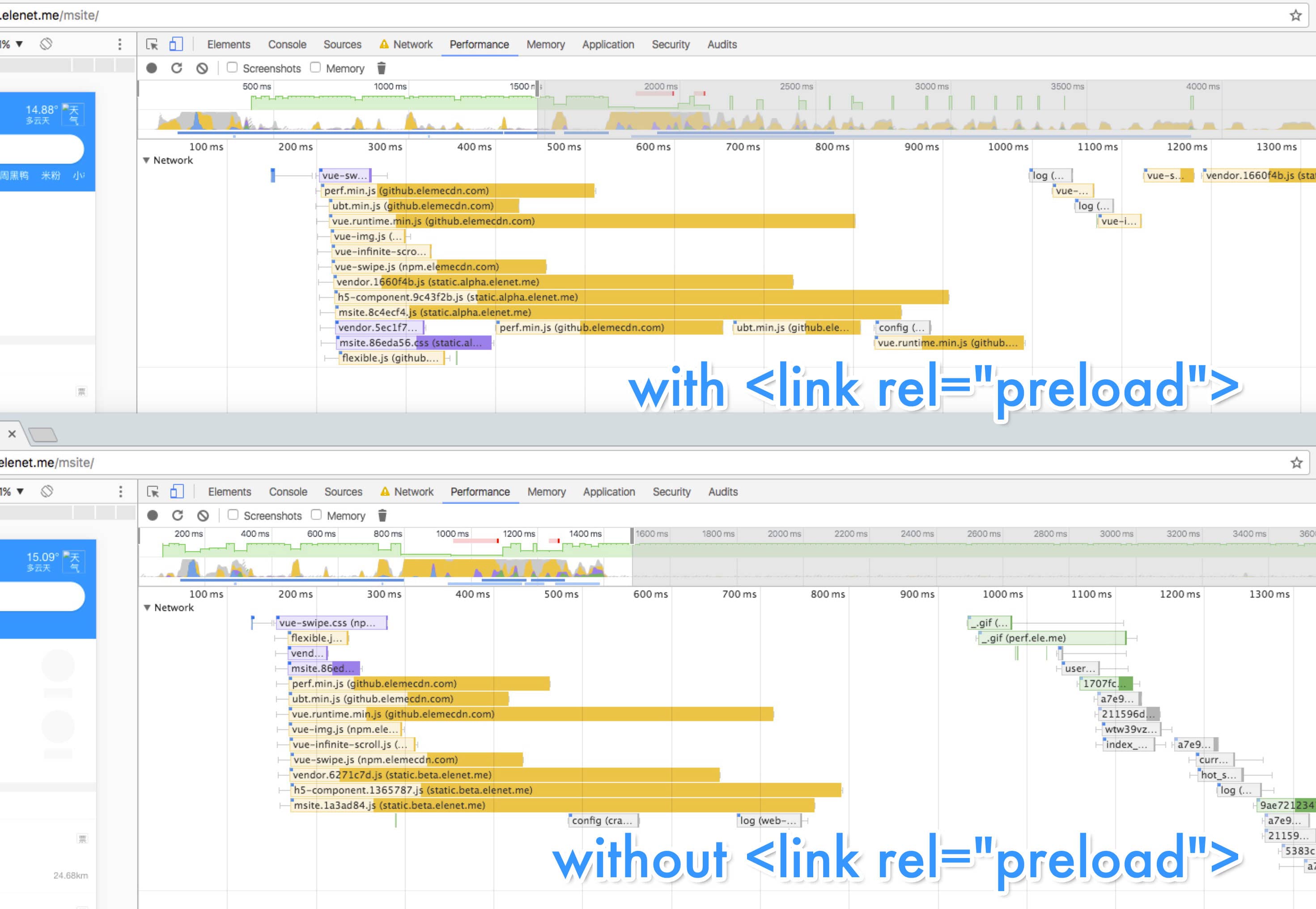 元素,因此他们可以在文档解析早期就被浏览器的 preloader 扫描出来并且开始请求,其效果其实与显式的 <link rel="preload">