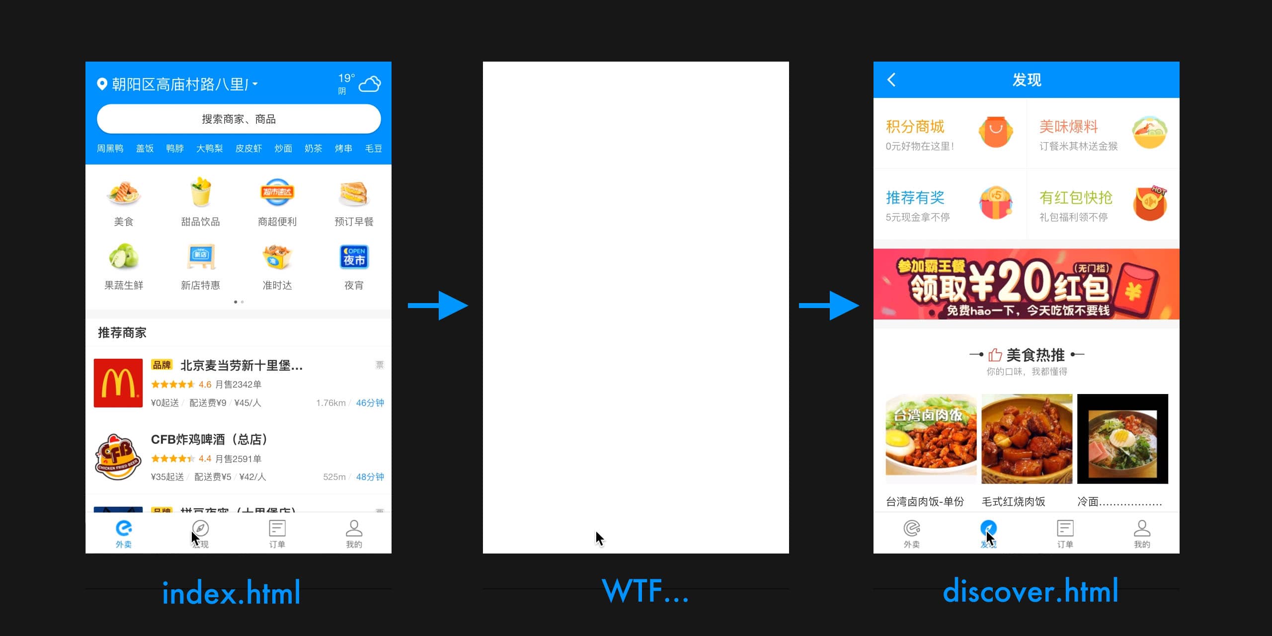 但是,故事并不是这么简单得就结束了。在实际的体验中我们发现,应用在页与页的切换时,仍然存在着非常明显的白屏空隙,由于 PWA 是全屏运行的,白屏对用户体验所带来的负面影响甚至比以往在浏览器内更大。我们不是已经用 Service Worker 缓存了所有资源了吗,怎么还会这样呢?